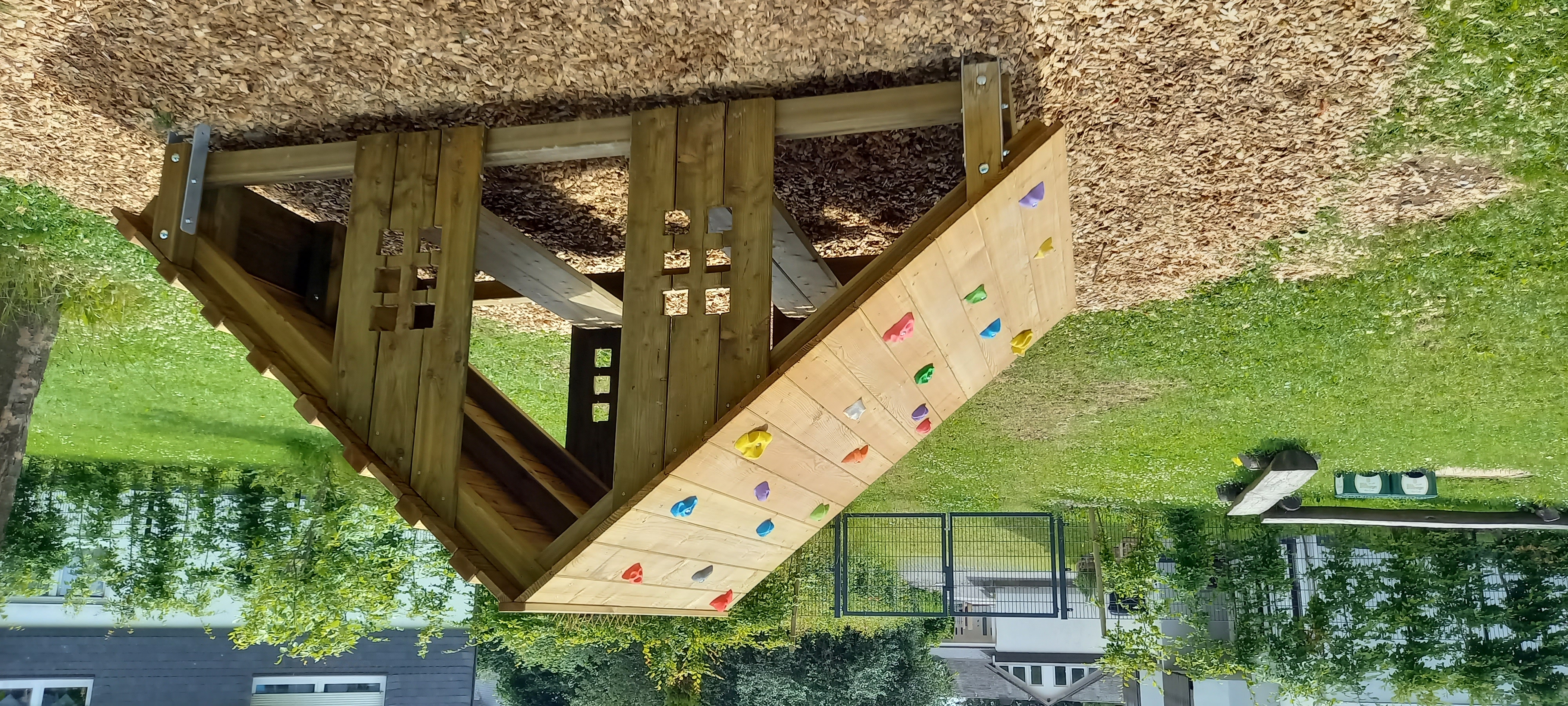 Kletterspielhaus 1 Dachseite mit Climbingriffen