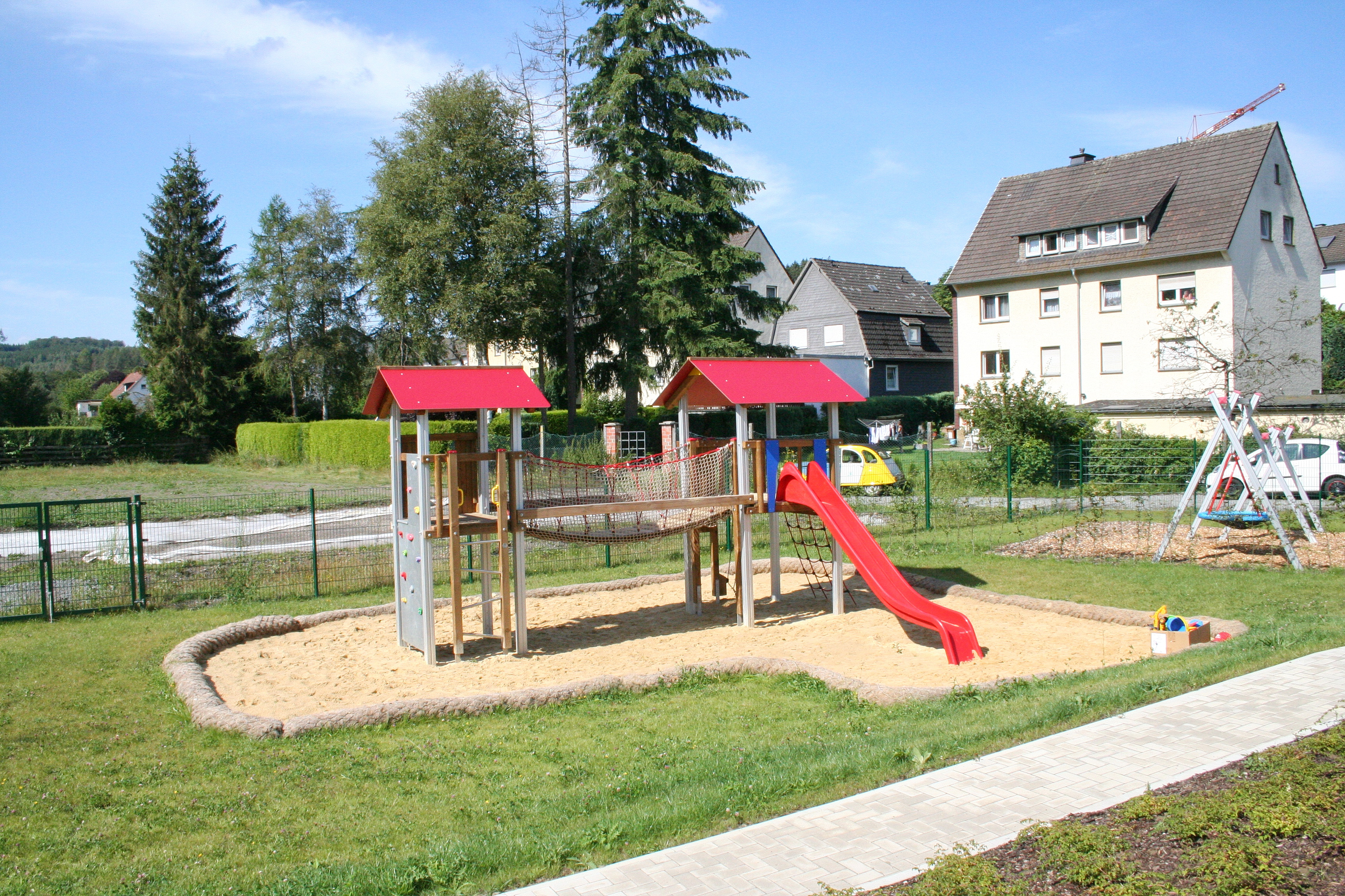 Die Anlage befindet sich auf dem Außengelände der Kindertagesstätte Caritas in Sundern und wurde harmonisch in das Gelände eingebunden.