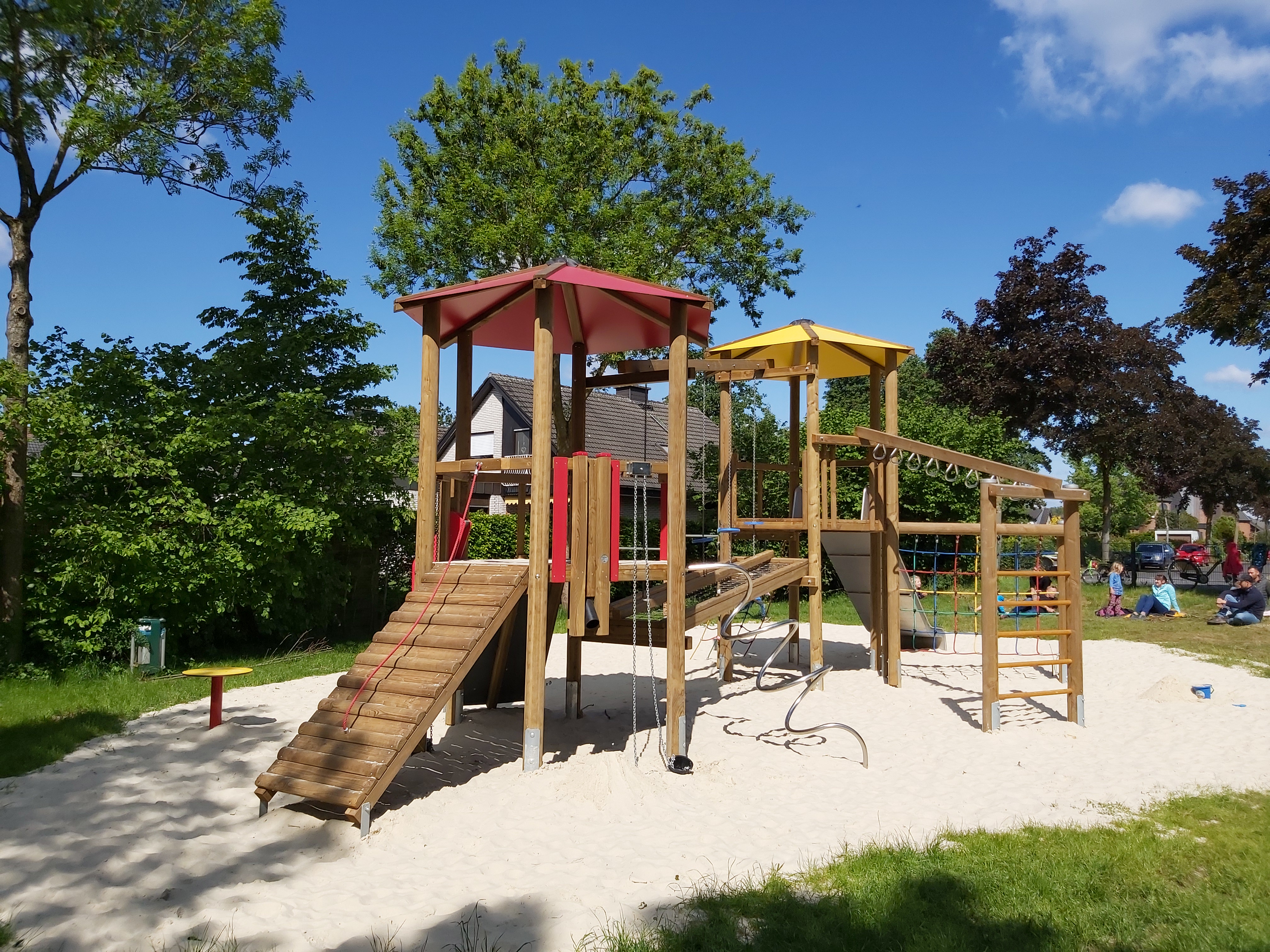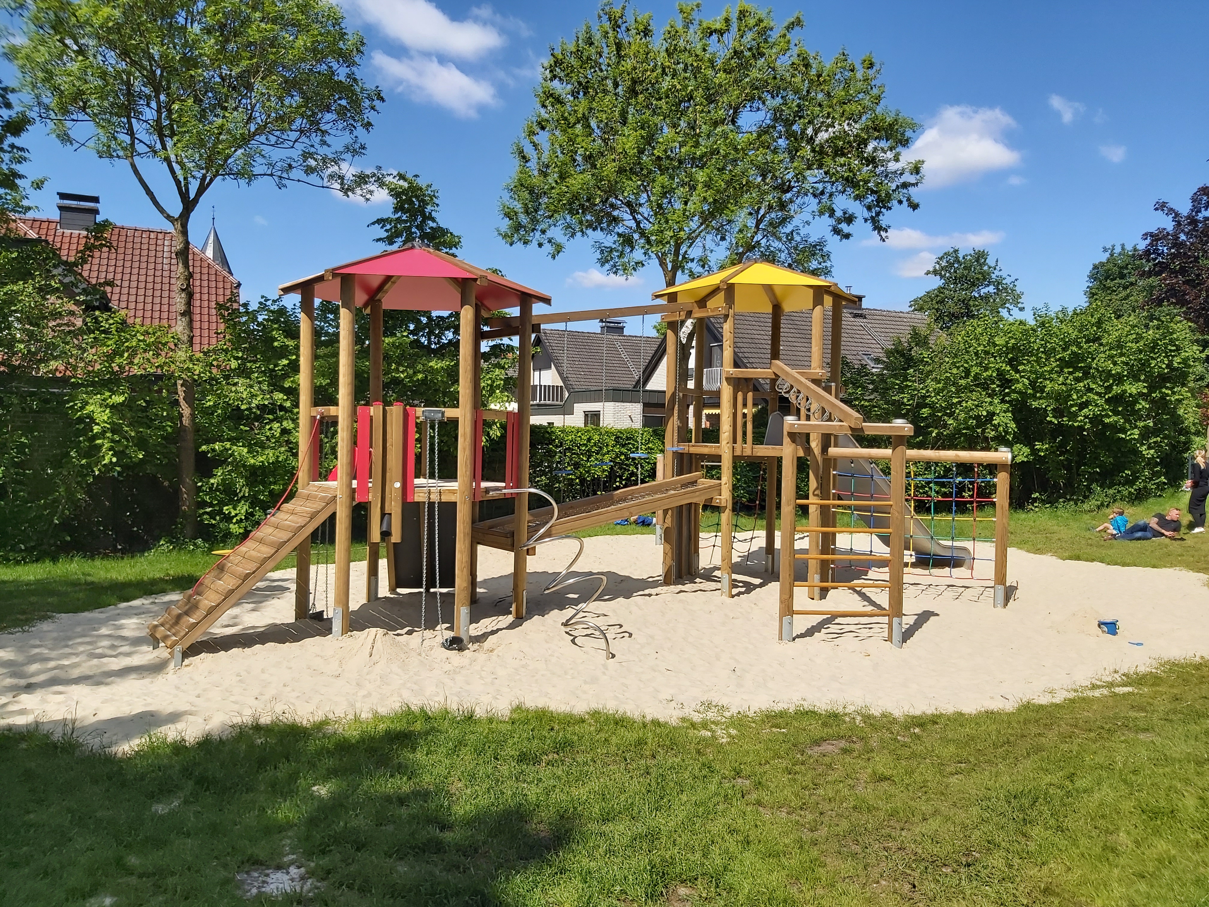 Der Spielplatz Eickholt wurde mit einer Doppelturmkombination ausgestattet, die Kindern verschiedene Kletter- und Spieloptionen bietet und zur aktiven Bewegung anregt.