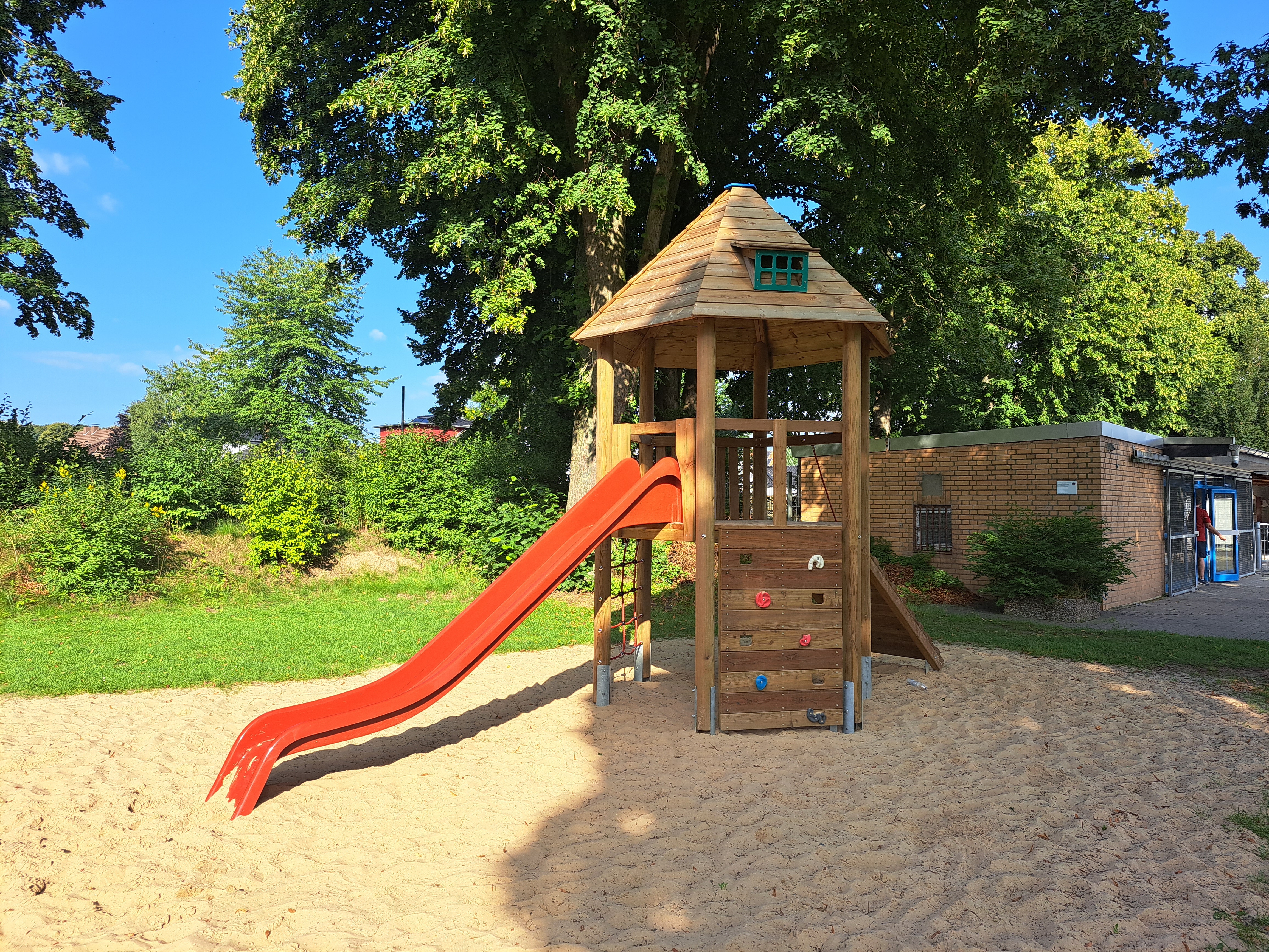Ein moderner Spielbereich ergänzt das Freibad in Lage und lädt Familien zum Verweilen ein.