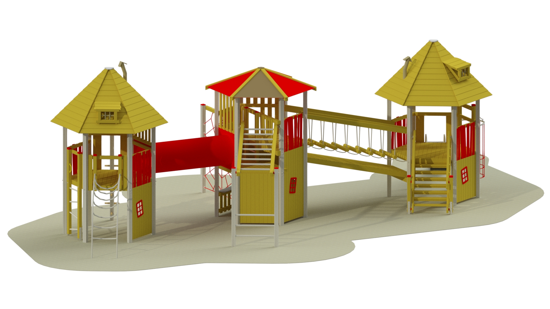 Moderne, großzügige Spielanlage mit vielseitigen Kletter-, Rutsch- und Balancier-Elementen. Robuste, wetterfeste Materialien und geprüfte Sicherheit sorgen für langanhaltenden Spielspaß. Modular anpassbar für Kindergärten, Schulen und öffentliche Flächen.