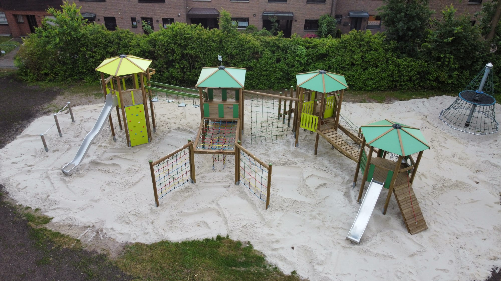 Der Spielplatz Erlenweg in Dülmen wurde mit einer vielseitigen Spielanlage ausgestattet, die Kinder aller Altersgruppen zu aktiver Bewegung und kreativem Spiel einlädt.