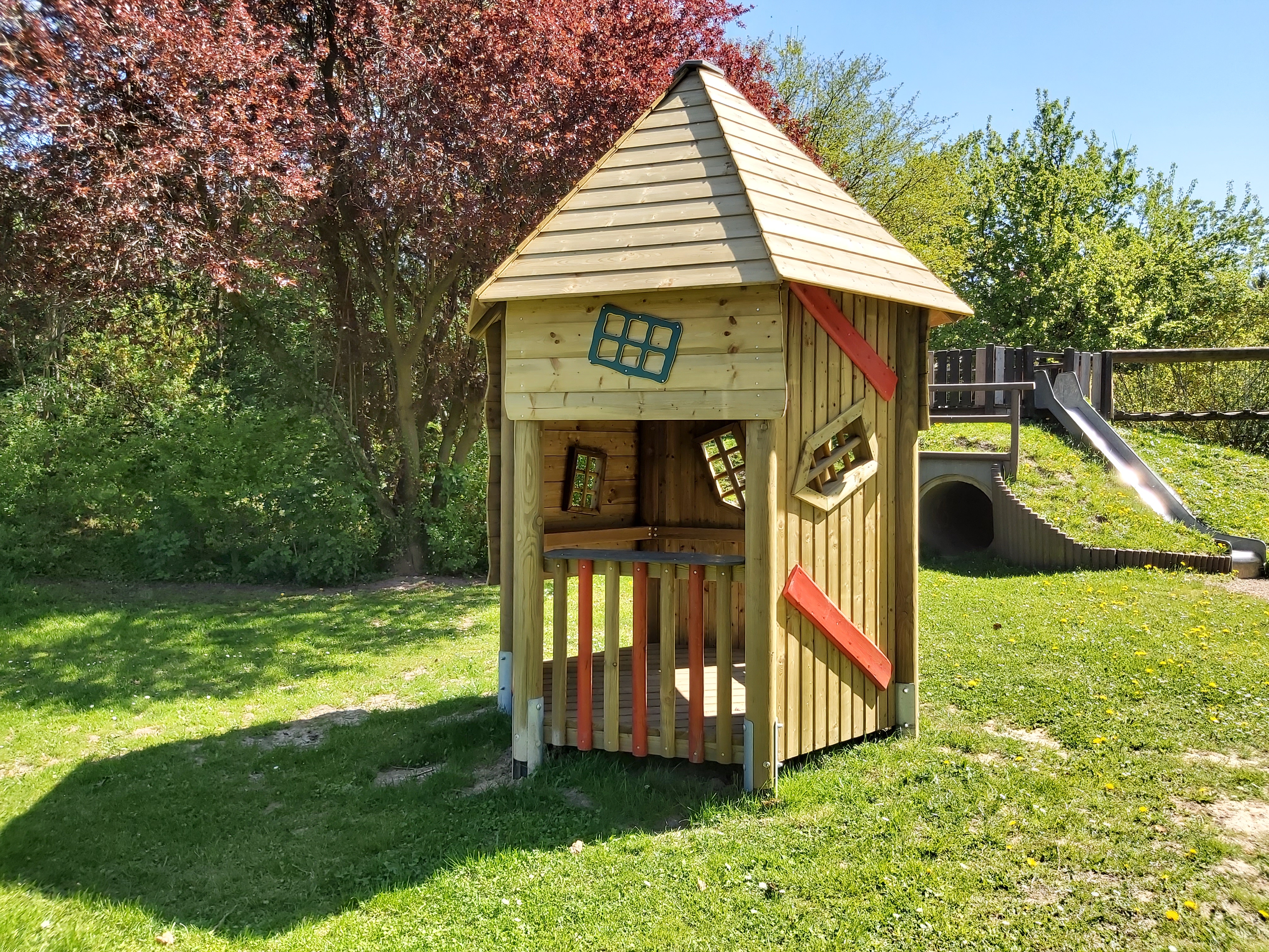 Im Rahmen der Neugestaltung des Spielplatzes Gänsewinkel wurde ein sechseckiges Spielhaus im neuen Design installiert. Es bietet Kindern Rückzugsräume, Spielanreize und lädt zum Verweilen ein – in einem offenen, barrierearmen Umfeld.