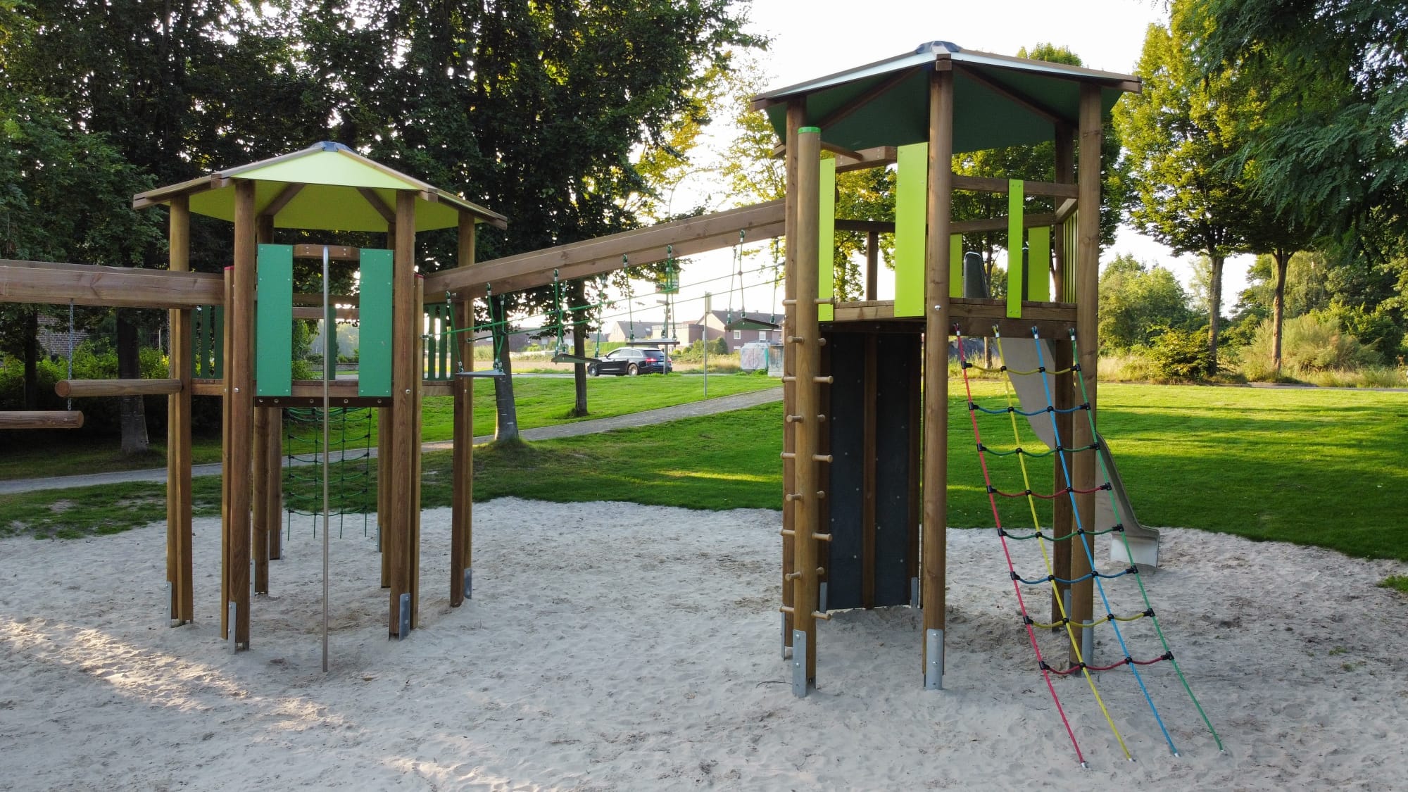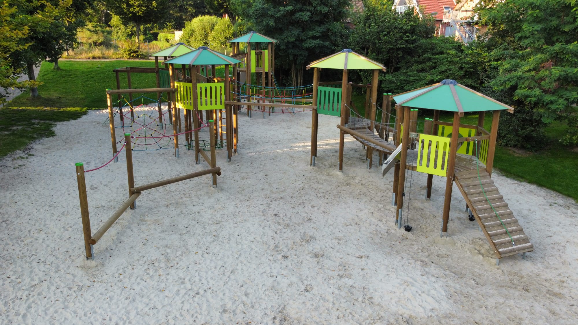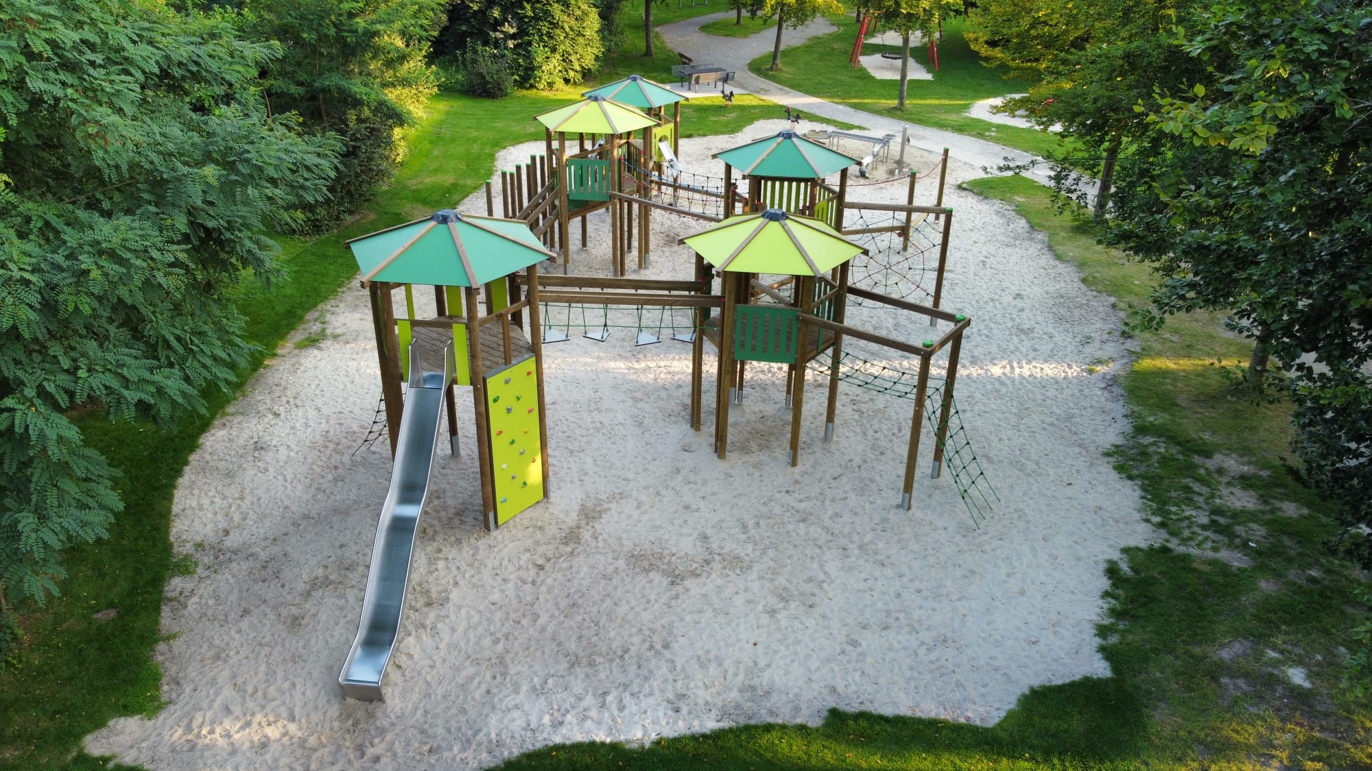 Gefordert war eine langlebige, sichere und spielerisch anspruchsvolle Anlage, die sich harmonisch in den öffentlichen Raum einfügt und Kinder aller Altersgruppen anspricht.