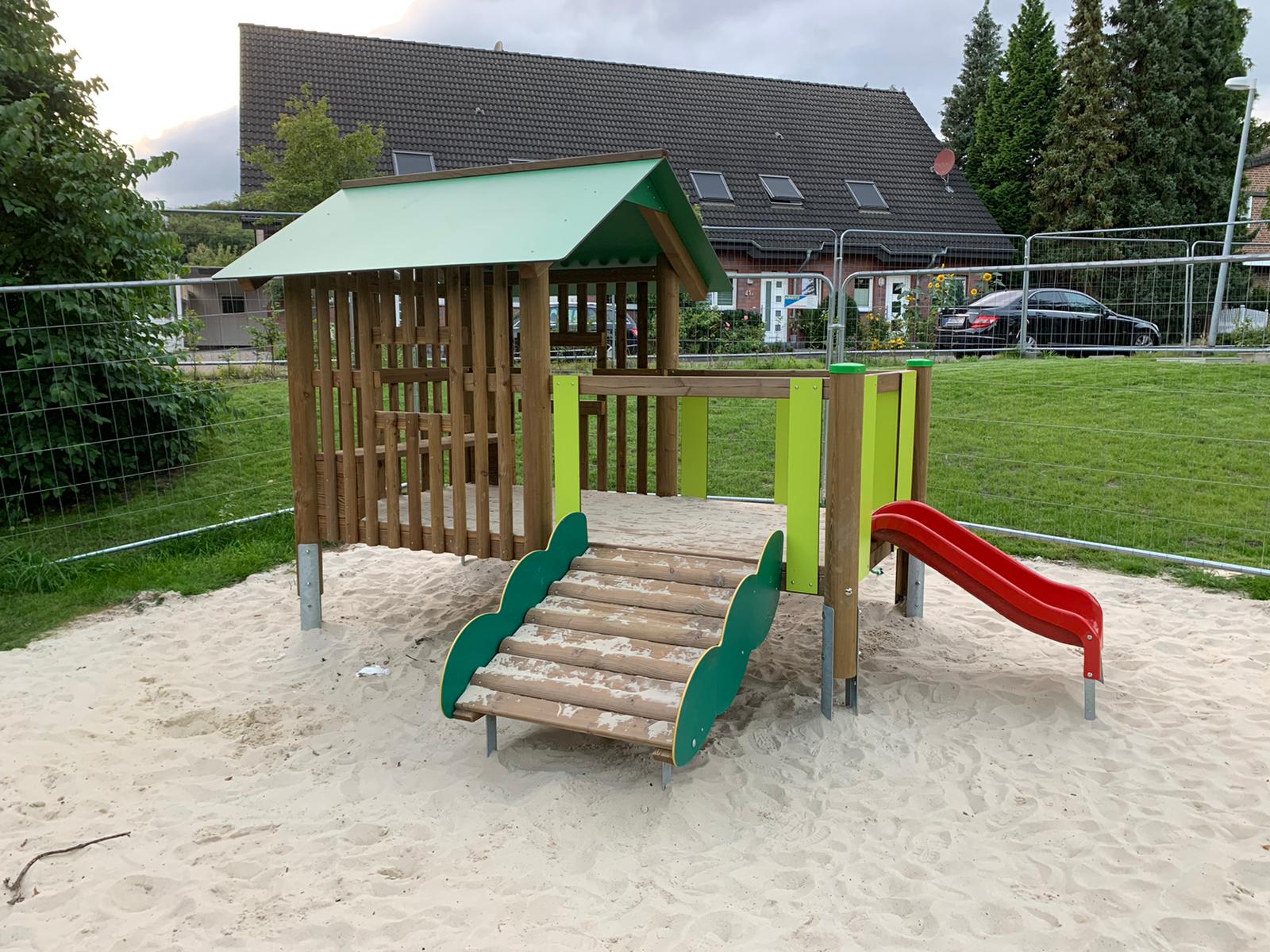 Der Spielplatz befindet sich in Dülmen und wurde als attraktiver Treffpunkt für Familien und Kinder gestaltet.