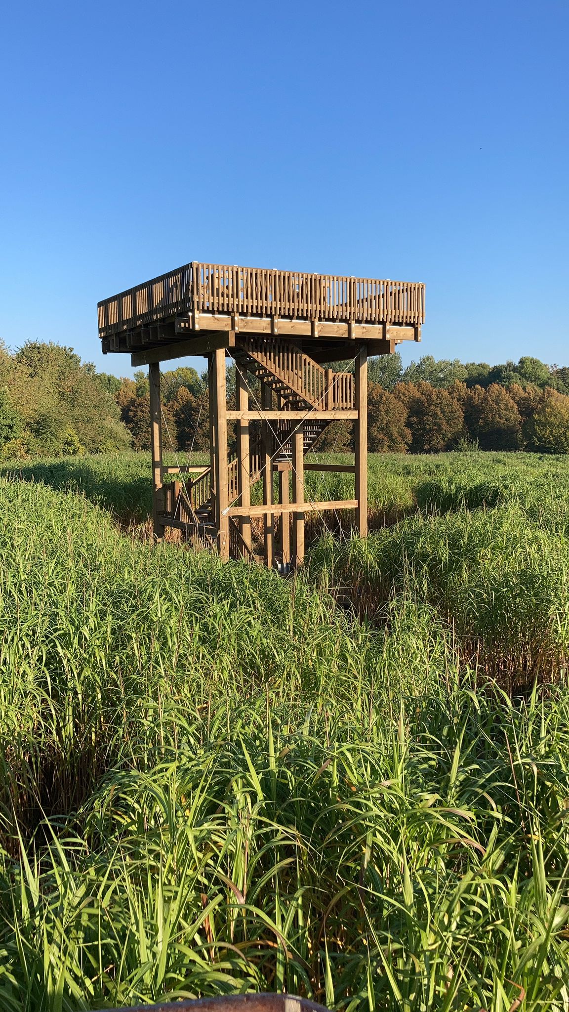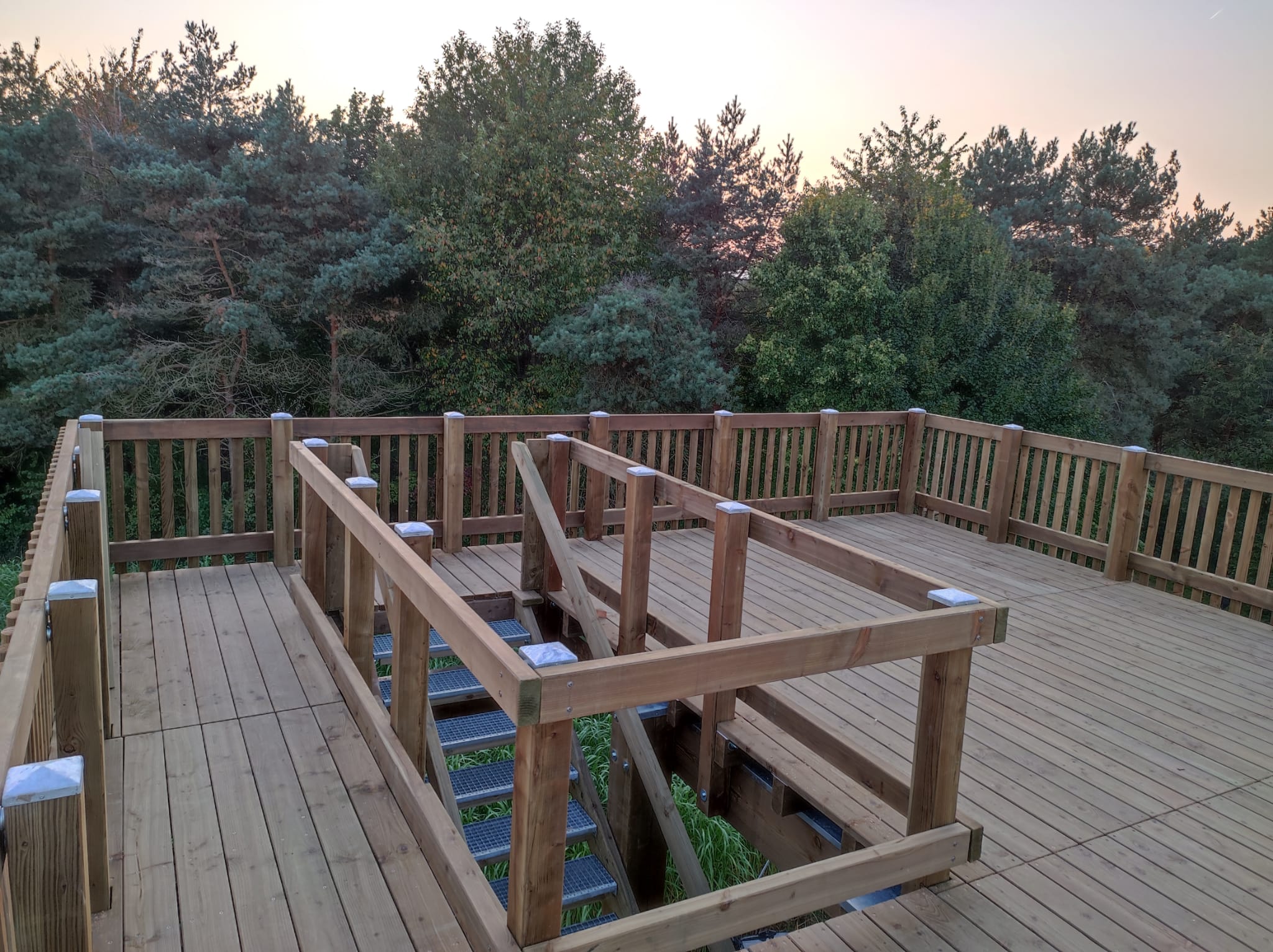 Aussichtsturm & Stege – Konstruktion aus heimischer Douglasie, ermöglicht einen barrierearmen Rundweg und den Blick auf das komplette Löwenmuster.